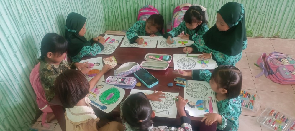 Kegiatan peringatan Hari Kartini di TK Dharma Wanita Pandansari berlangsung meriah dengan aktivitas kreatif yang melibatkan Kelompok A. Anak-anak tampak antusias mengikuti kegiatan membuat kreasi kipas dari bahan sederhana dengan hiasan warna-warni yang menarik. Suasana kelas pun dipenuhi keceriaan dan semangat belajar.